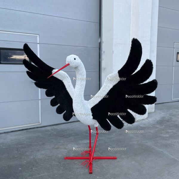 В основании композиции лежит металлический каркас, затем он армируется и покрывается стеклопластиком, который имеет прочность толстого металла, может выносить большие нагрузки, но при этом легкий, сверху декорируется искусственным густым качественным газоном с длиной ворса 20мм.